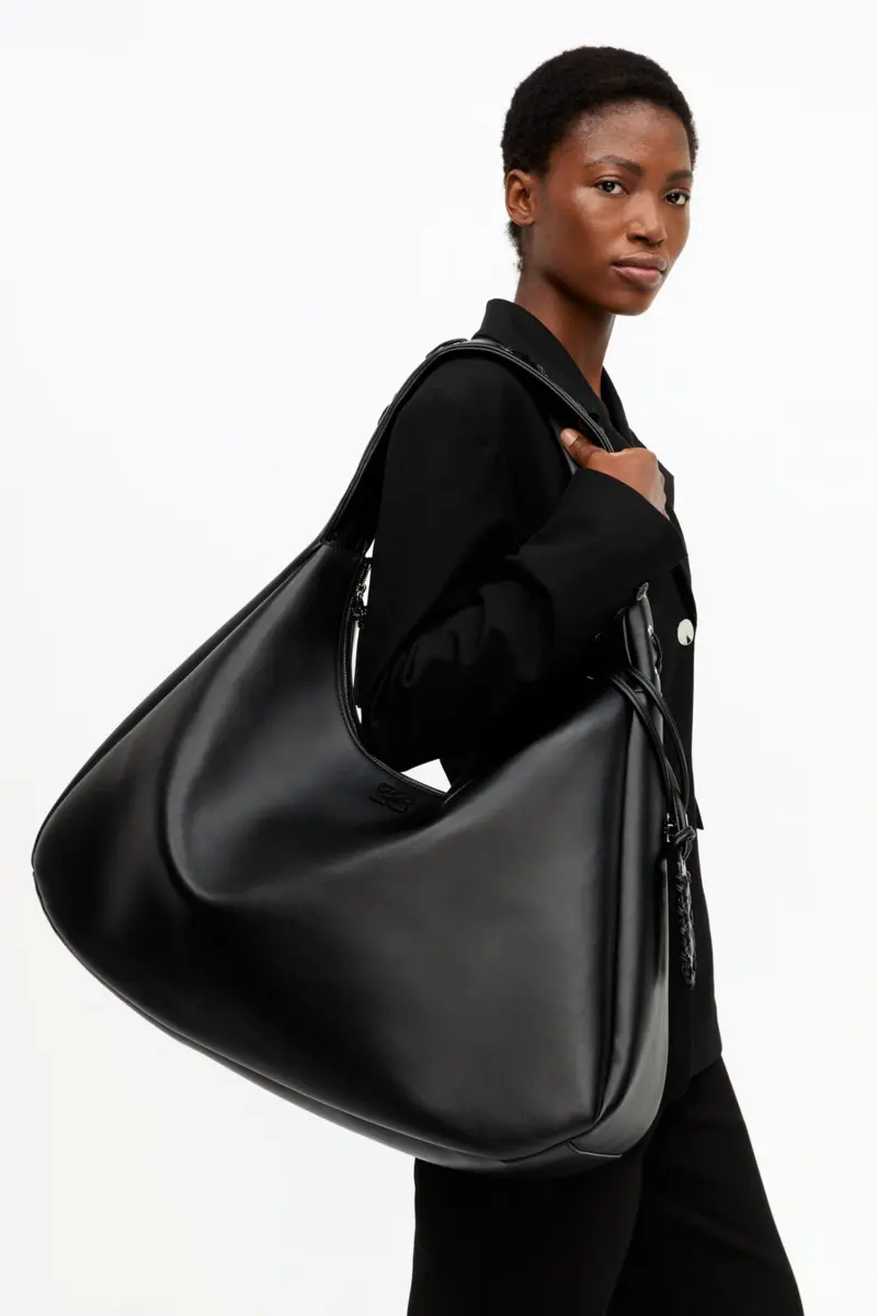 This bag is the silhouette of our Spring/Summer 2025 runway. Crafted with innovative materials, its oversized, slouchy shape is designed to be worn across the body or over the shoulder