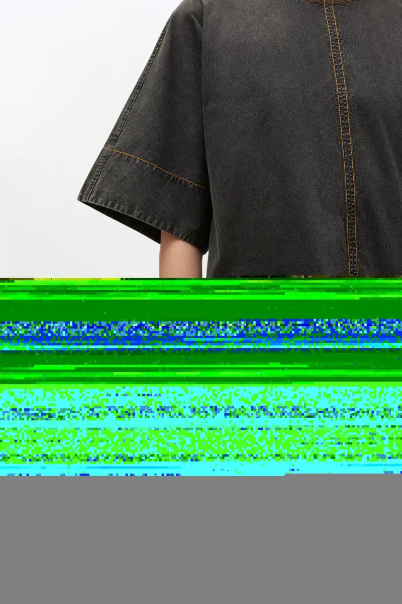 This dress features a round neck, short sleeves, 2 front pockets and contrast stitching detailing.