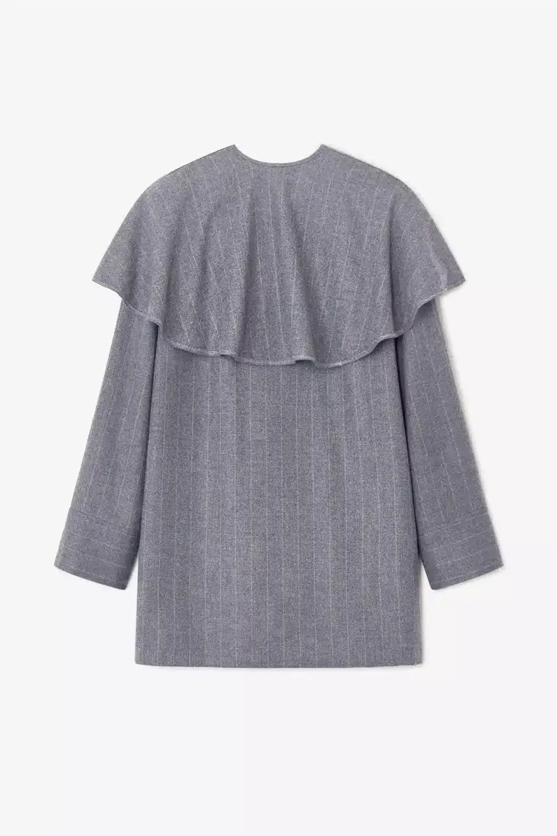 This dress features a striped print, a removable circle collar, long sleeves with a wide cuff and a zipper closing at back.