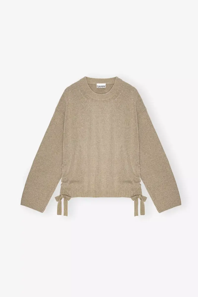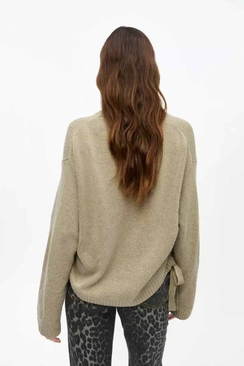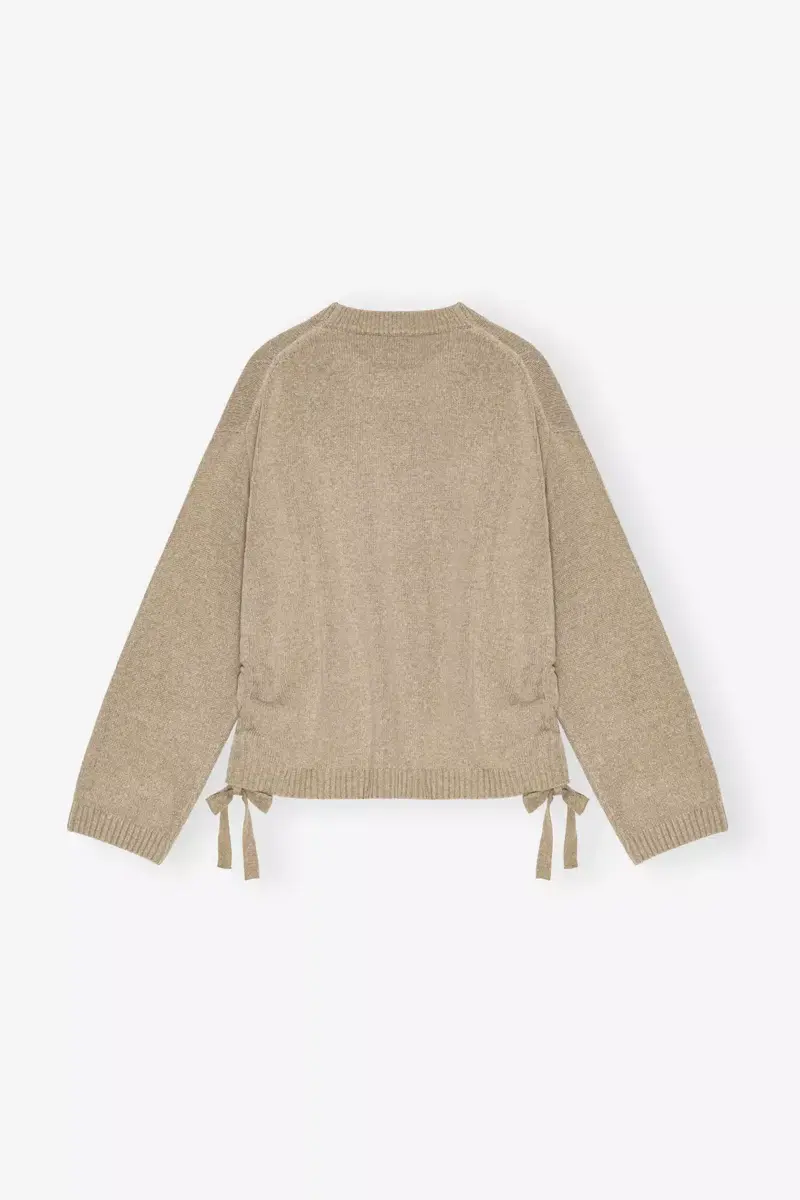 This jumper features a round neckline, long sleeves, ruched detailing on the sides and tie details.