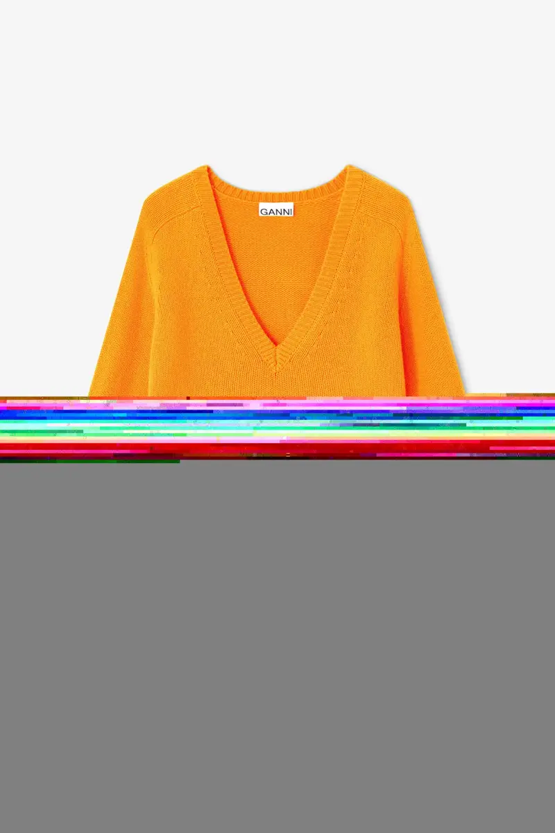 This jumper features a deep v-neckline, long sleeves with rib edges and a GANNI Butterfly logo at the side.