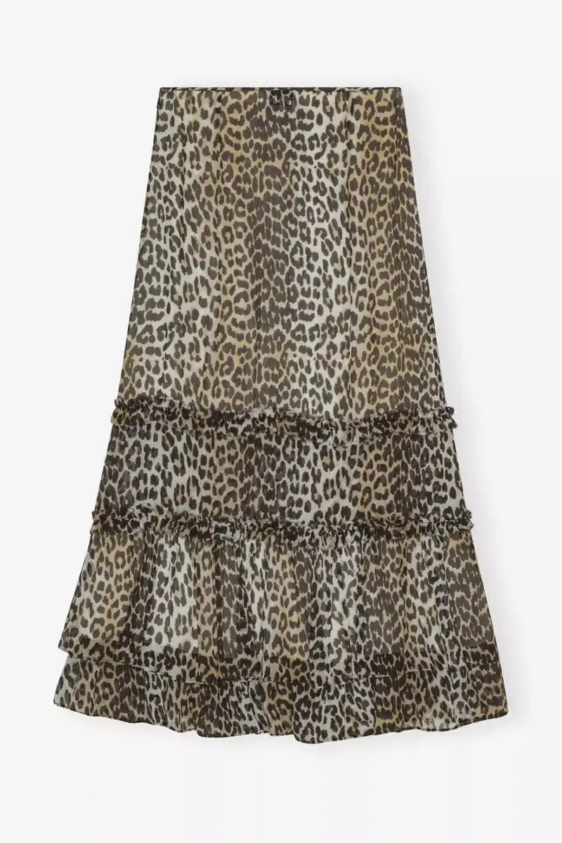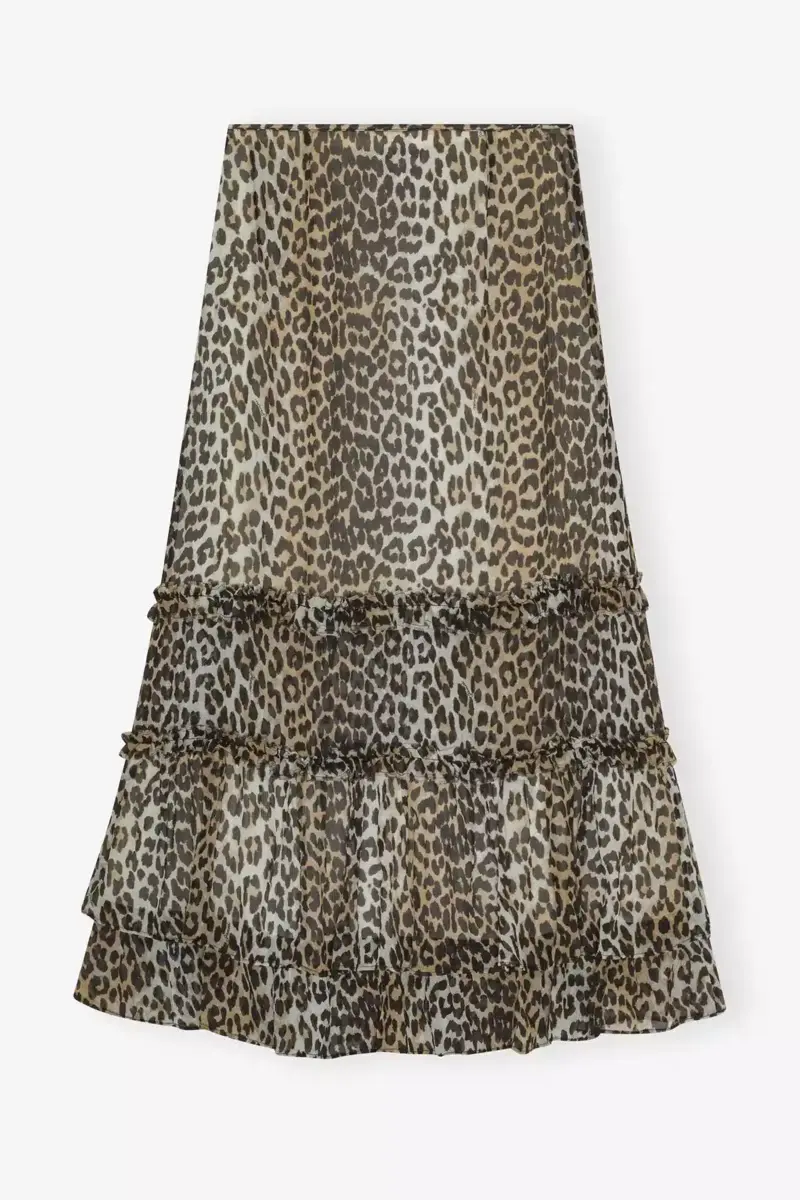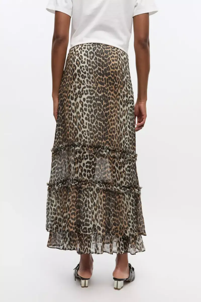 Leopard Print Long Chiffon Ruffle Skirt