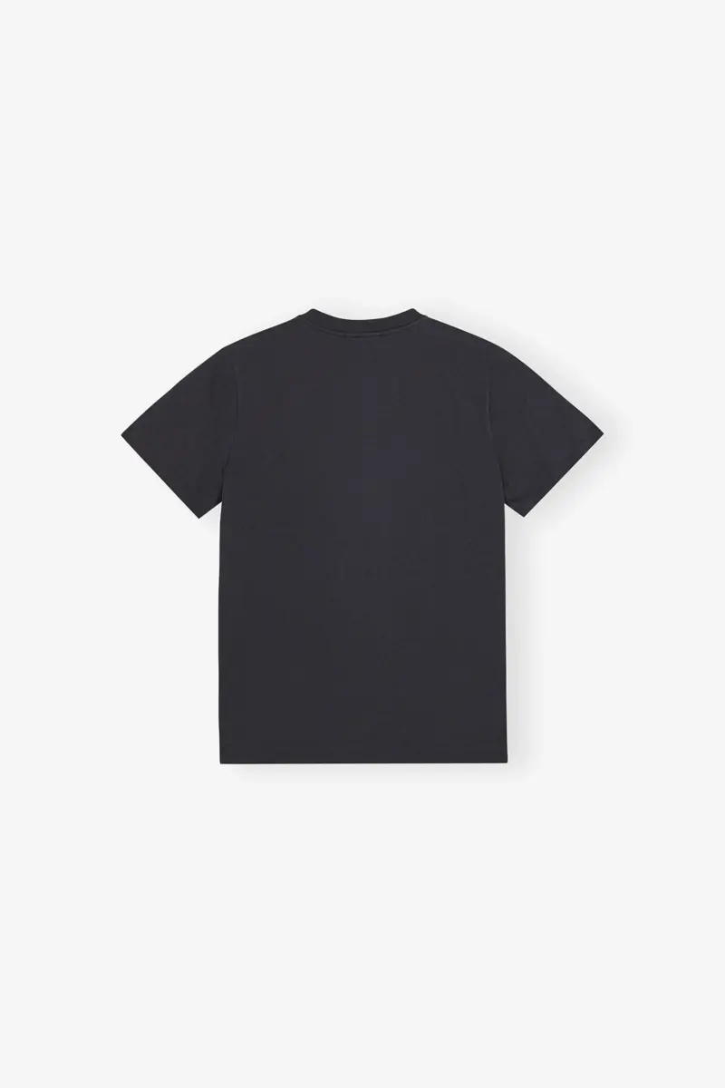 ThisT-shirt features a round neckline, short sleeves and a GANNI logo written in black rhinestones. The T-shirt has a banana graphic on the front with a ‘Have a nice day! Please recycl