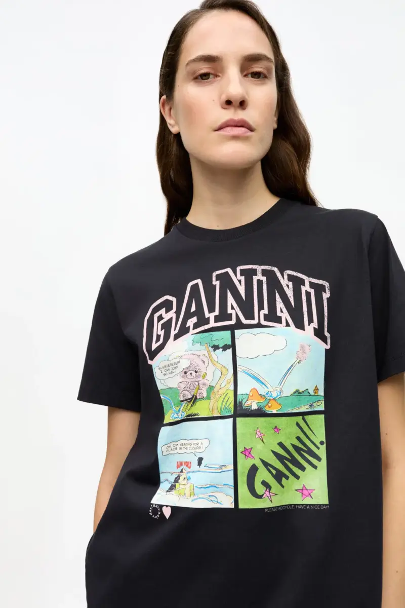This Black Basic Jersey Teddy Relaxed T-shirt features a crew neckline, short sleeves and a graphic GANNI print.