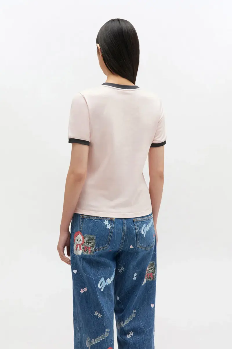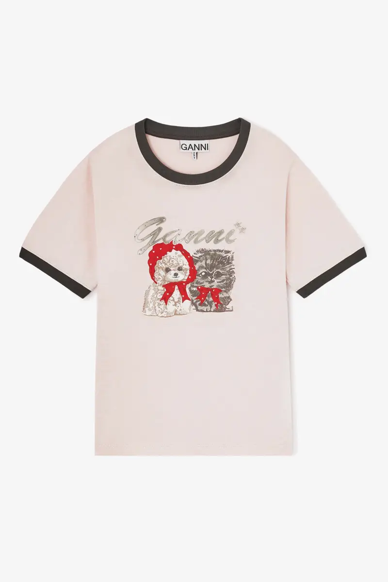 This T-shirt features a round neckline, short sleeves, an animal print graphic and a GANNI logo.
