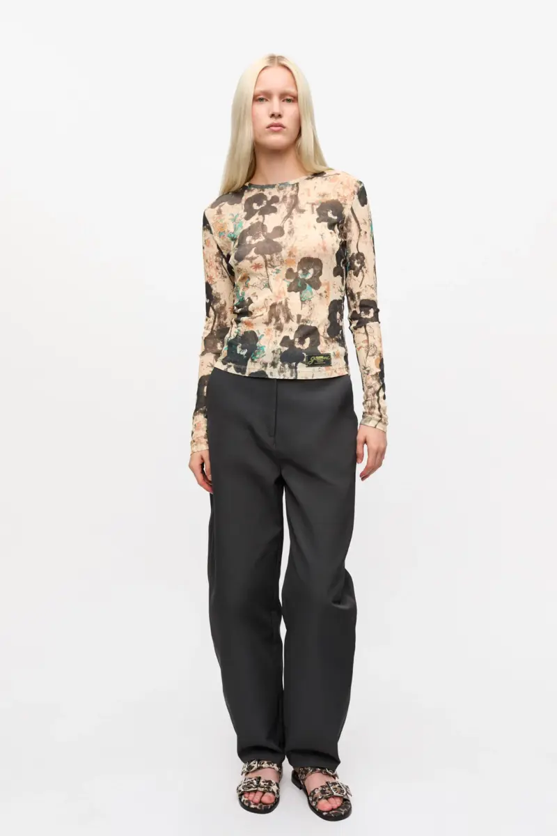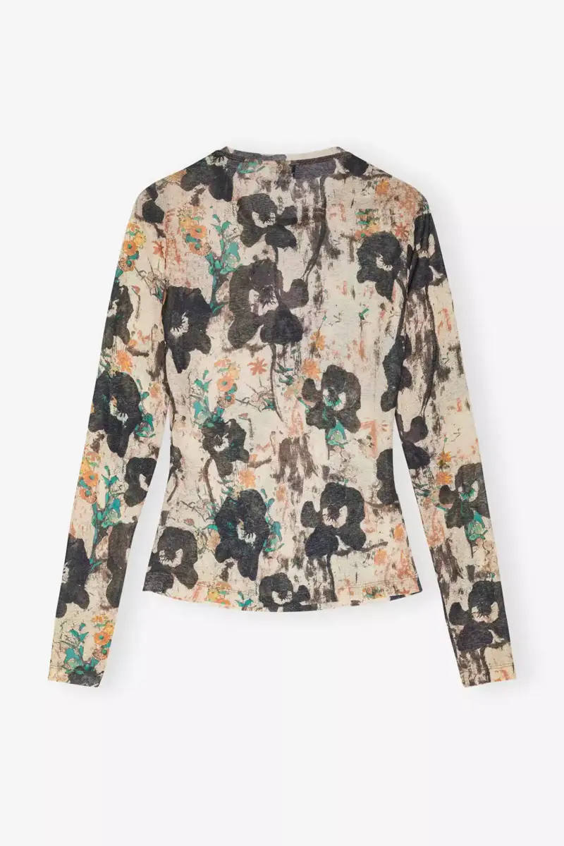 This Printed Marl Mesh Long Sleeve Top features a round neckline, long sleeves and a sewn-on GANNI logo patch.