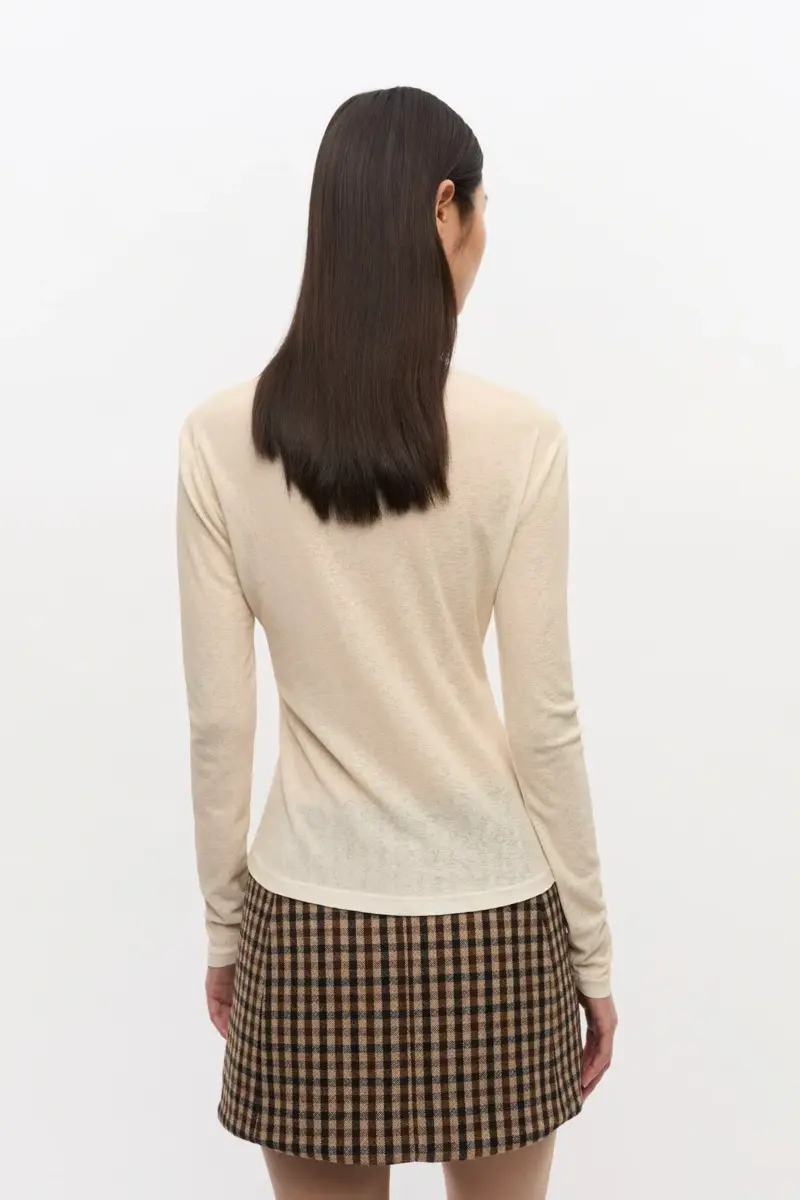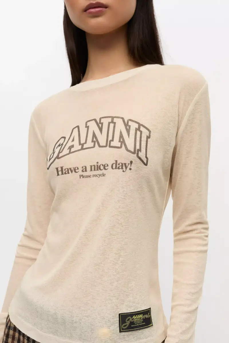 This top features long sleeves and a form-fitted silhouette. The material has a mesh texture, providing a lightweight feel.