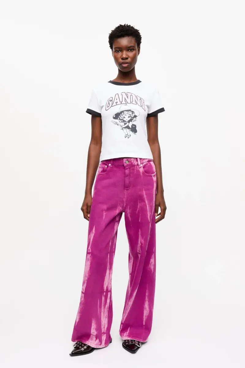 This T-shirt features a slim-fit silhouette with a crew neckline, short sleeves, and black ribbed edges. The T-shirt has the number ’13’ at the back, and a witch and GANNI logo at the