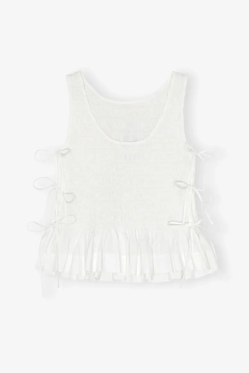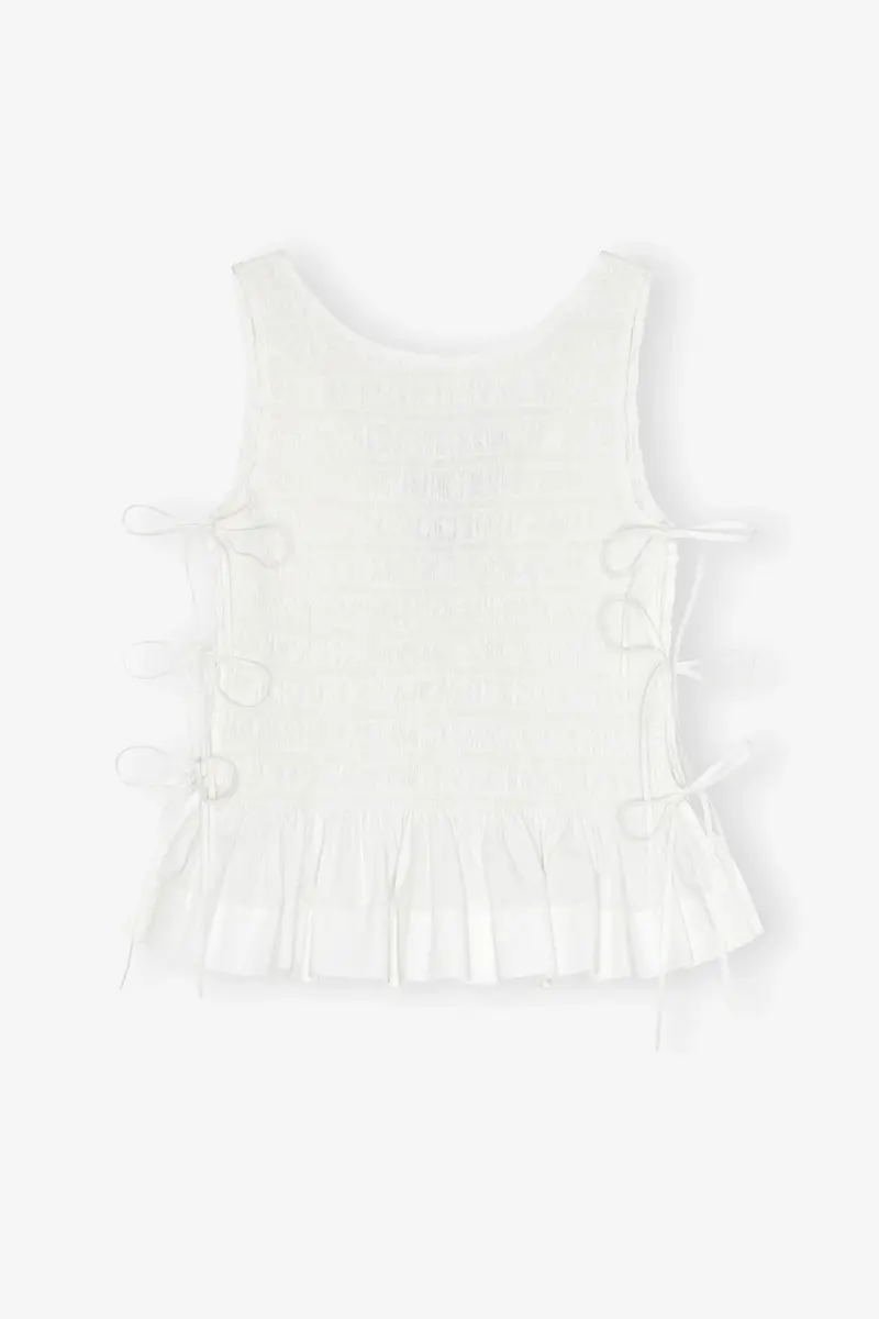 White Cotton Smock Tie Top