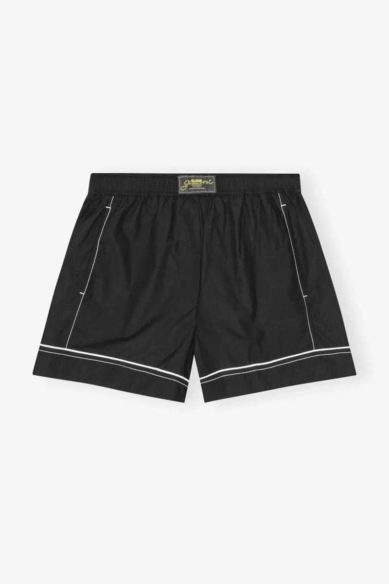 Whether at home or away, these Black Cotton Poplin Shorts are perfect for lounging or casual wear. Crafted from soft, crisp organic cotton poplin with white stitching, they feature an
