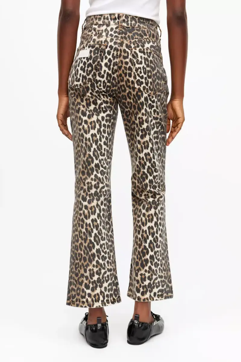 These jeans in leopard printed denim feature a zip and button closure, 5 pockets, belt loops and a GANNI logo at the back pocket.