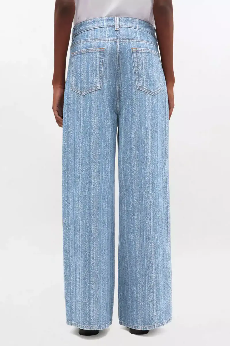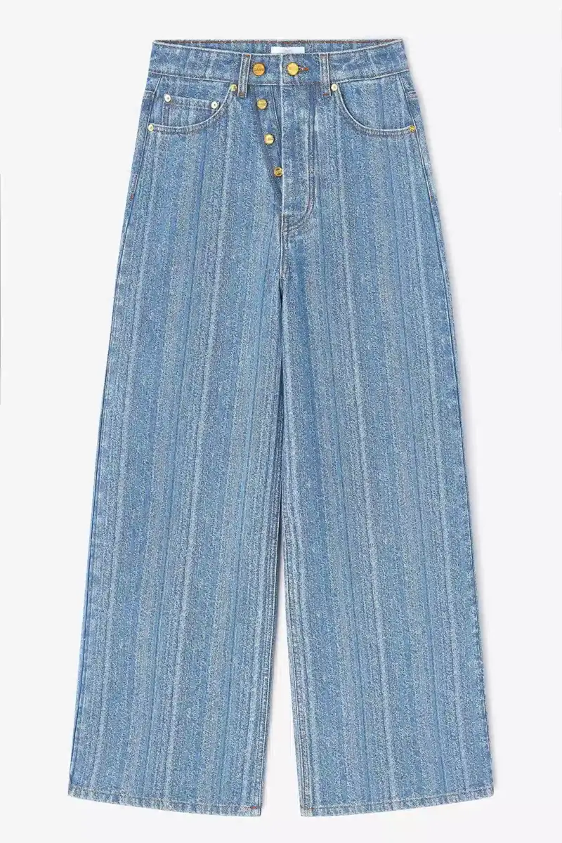 These jeans in striped denim feature a zip and button closure, 5 pockets, belt loops and a GANNI logo patch on back pocket.