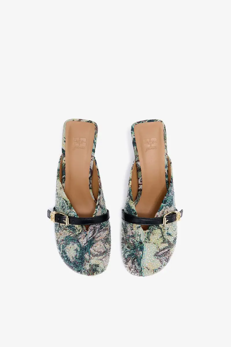 Sue Heeled Mules in Tapestry